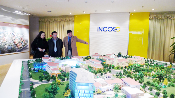 北京北大未名生物工程集團有限公司總裁楊曉敏(左一)、董事長(cháng)潘愛(ài)華(左二)在國際干細胞聯(lián)合研究中心(INCOSC)、博雅干細胞庫(BOYALIFE)董事長(cháng)許曉椿博士的陪同下,參觀(guān)國際干細胞聯(lián)合研究中心(INCOSC)展廳