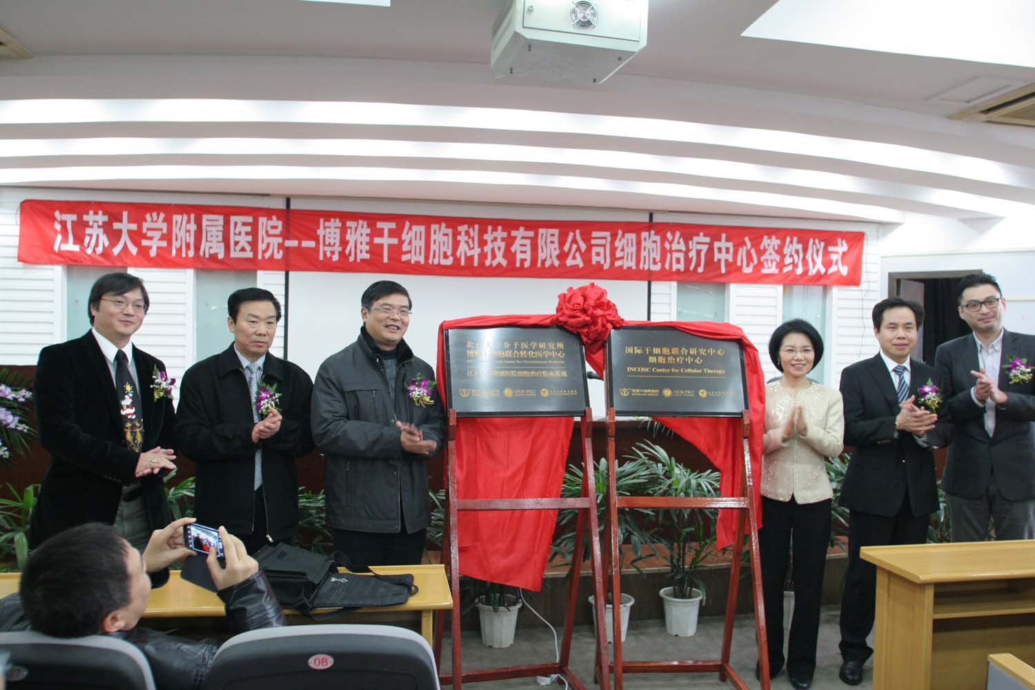 江蘇大學(xué)附屬醫院、北京大學(xué)分子醫學(xué)研究所、博雅干細胞集團及江蘇大學(xué)共同揭牌