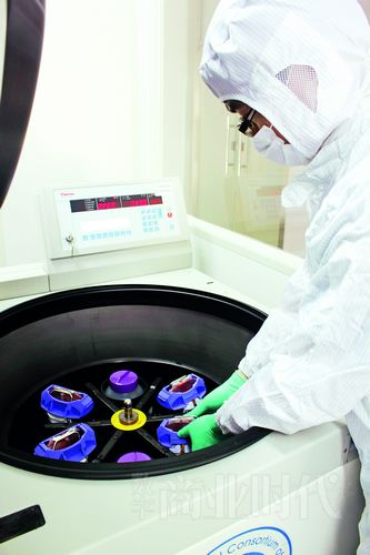 許曉椿的團隊更是在干細胞領(lǐng)域攻克了多項技術(shù)難題?!拔覀儶毩㈤_(kāi)發(fā)了一系列擁有專(zhuān)利的新的設備,這是在行業(yè)里領(lǐng)先的?!痹S曉椿興奮地說(shuō),過(guò)去一個(gè)員工要從胎盤(pán)里分離出干細胞需要花4小時(shí)以上,一天只能做1~2個(gè)。而新的設備分離12個(gè)干細胞只需要45分鐘,平均3~4分鐘一個(gè),效率提高了100倍,而分離率提高了4倍。