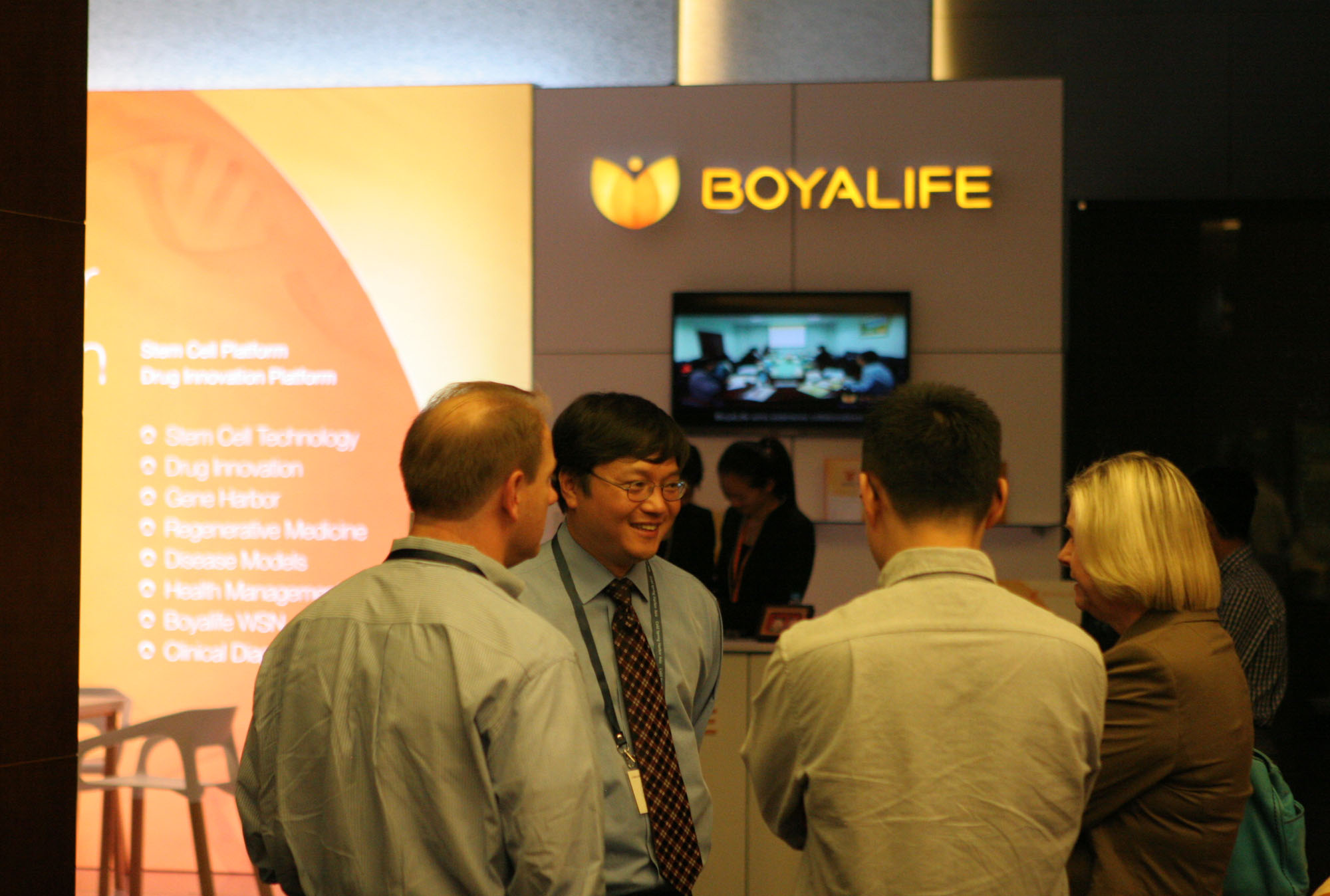 博雅干細胞集團董事長(cháng)許曉椿博士(左二)與專(zhuān)家、學(xué)者交流當今干細胞研究領(lǐng)域的最新發(fā)展和應用