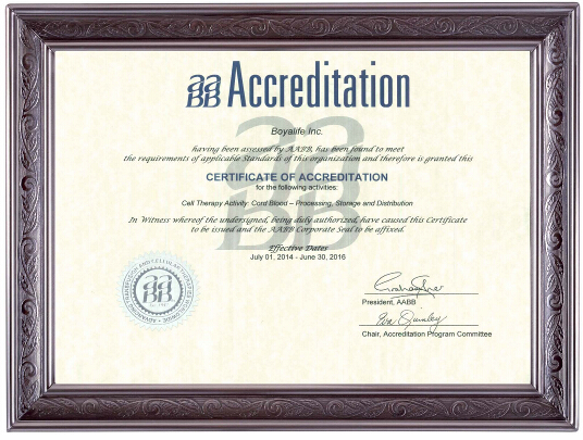 ??????? 美國AABB,創(chuàng )立于1947年,是由從事輸血及細胞治療行業(yè)人士和機構組成的非營(yíng)利國際認證組織,是國際干細胞行業(yè)規范的制定者和行業(yè)認證的權威機構。其認證范圍涵蓋干細胞采集、處理、儲存、發(fā)放及應用等方面,認證內容保持了每?jì)赡暌淮蔚母骂l度,充分保證了標準的先進(jìn)性與適用性,認證過(guò)程極其嚴格,審核內容細化到了每一個(gè)工作環(huán)節和操作流程,被業(yè)界公認最為嚴苛、完備、專(zhuān)業(yè)的國際標準。