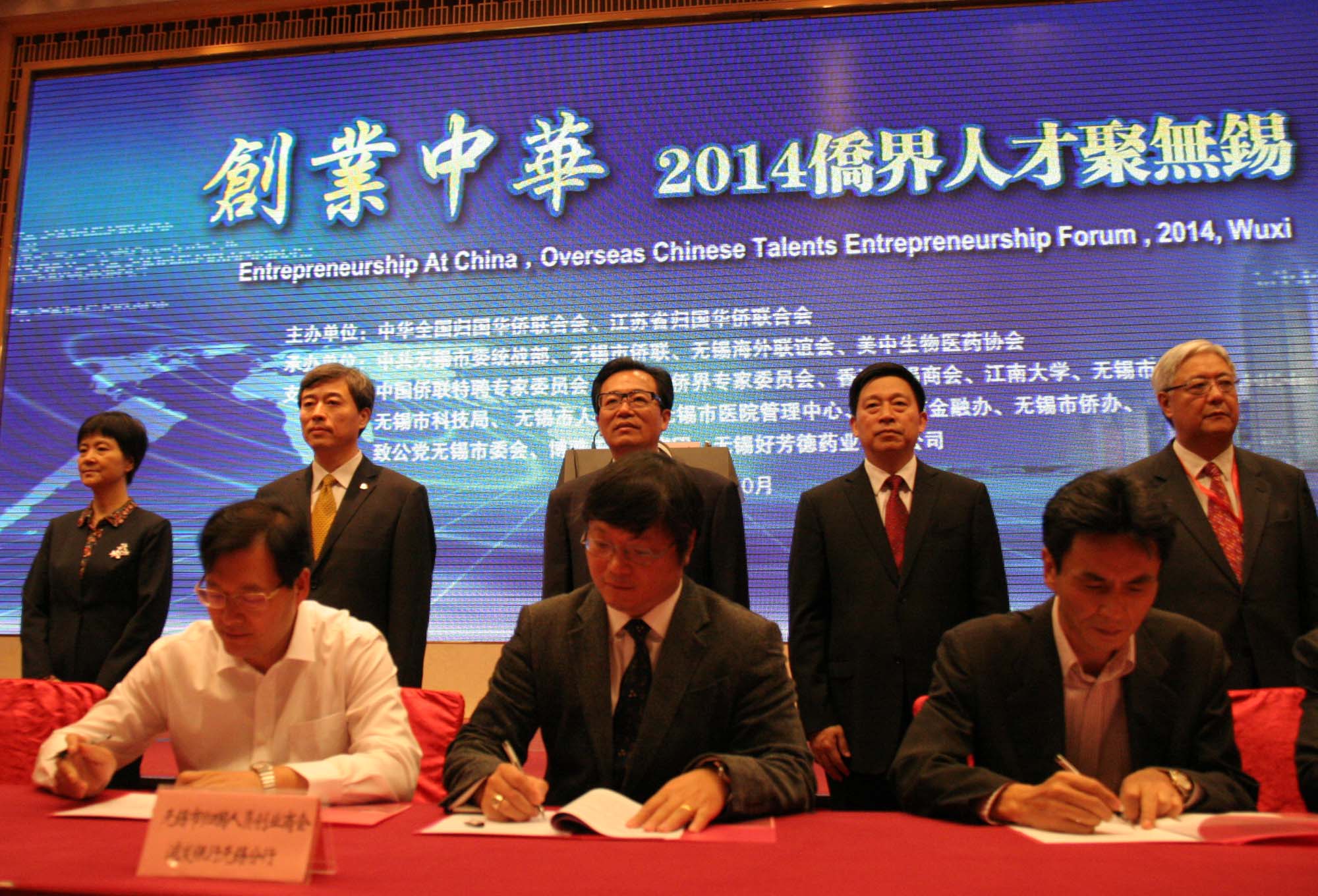 ? ? ? ? 開(kāi)幕式上,上海浦東發(fā)展銀行無(wú)錫分行與無(wú)錫市歸國人員創(chuàng )業(yè)商會(huì )簽訂戰略合作協(xié)議,浦發(fā)銀行給予創(chuàng )業(yè)商會(huì )及其會(huì )員企業(yè)為期五年30億元人民幣的意向性綜合授信;經(jīng)全市統戰和僑聯(lián)系統牽線(xiàn)搭橋,引資引智的8個(gè)項目進(jìn)行了現場(chǎng)簽約,許曉椿博士代表博雅干細胞集團與浦東發(fā)展銀行簽約。