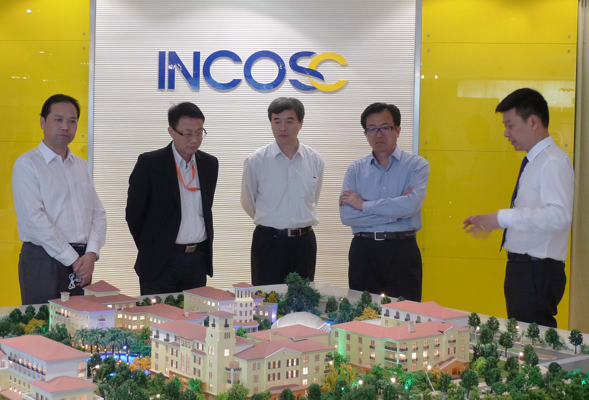 博雅副總裁王謀(右一)為中國僑聯(lián)副主席李卓彬(右二)、江蘇省僑聯(lián)主席史宇(中)、無(wú)錫市僑聯(lián)主席馮雷(左一)一行介紹集團發(fā)展情況