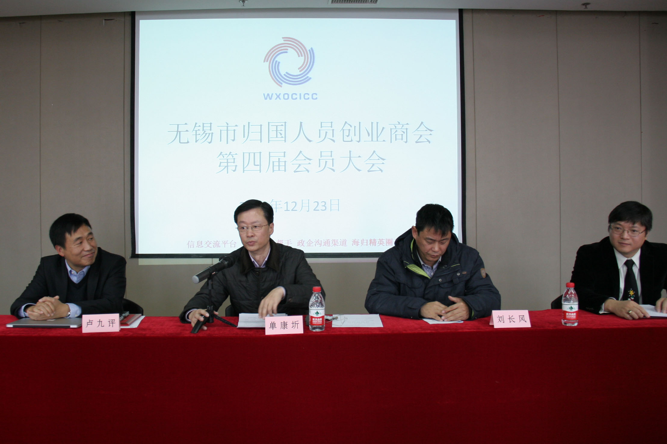 中共無(wú)錫市委統戰部副部長(cháng)、工商聯(lián)組黨書(shū)記單康圻講話(huà)(左二)