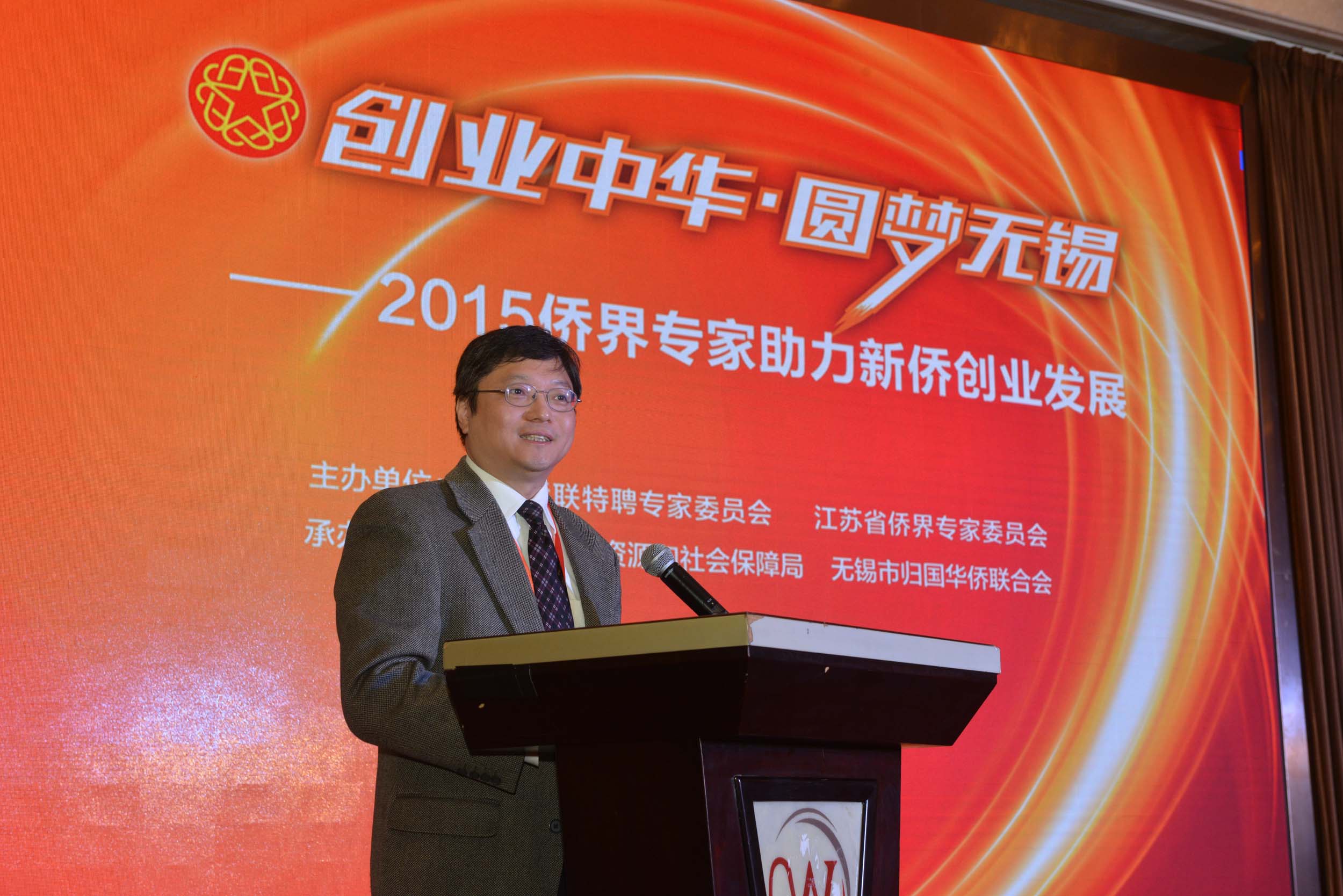 ??????? 為貫徹市委全會(huì )精神,整合海內外高層次人才智力資源,為無(wú)錫經(jīng)濟社會(huì )發(fā)展提供有力支撐,11月2日,由中國僑聯(lián)特聘專(zhuān)家委員會(huì )、江蘇省僑界專(zhuān)家委員會(huì )主辦的“創(chuàng )業(yè)中華?魅力無(wú)錫”——2015僑專(zhuān)委助力新僑創(chuàng )業(yè)發(fā)展活動(dòng)在無(wú)錫君來(lái)世尊酒店開(kāi)幕,中國僑聯(lián)、省僑聯(lián)、無(wú)錫市委、市政府領(lǐng)導,中國僑聯(lián)特聘專(zhuān)家委員會(huì )創(chuàng )業(yè)指導委員會(huì )委員、省僑聯(lián)僑界專(zhuān)家委員會(huì )委員等出席開(kāi)幕式。博雅控股集團董事長(cháng)許曉椿博士作為新僑創(chuàng )業(yè)者出席會(huì )議并與在錫創(chuàng )業(yè)新僑分享創(chuàng )業(yè)成功經(jīng)驗。