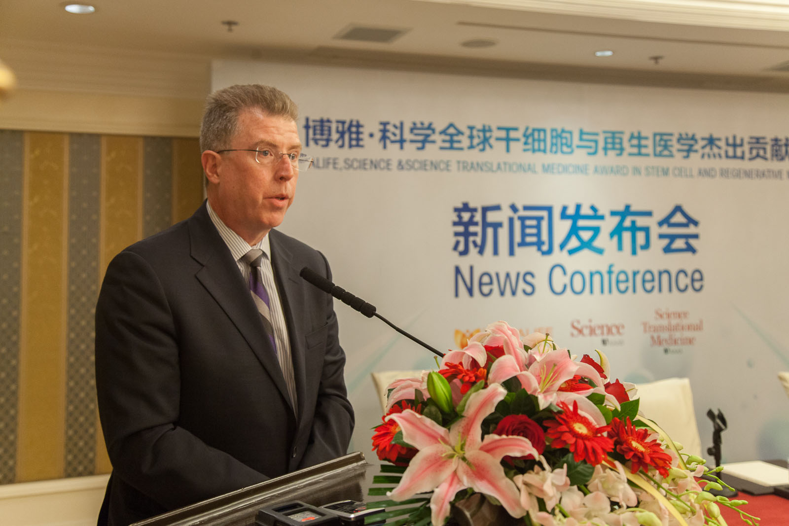 ??????? 12月12日,首個(gè)由中國企業(yè)和美國《科學(xué)》(Science)雜志聯(lián)合設立的“博雅?科學(xué)干細胞與再生醫學(xué)杰出貢獻獎”(Boyalife,Science&ScienceTranslational?Medicine?Award?in?Stem?Cells?and?Regenerative?Medicine)(簡(jiǎn)稱(chēng)博雅?科學(xué)獎)新聞發(fā)布會(huì )在北京舉行,博雅控股集團董事長(cháng)許曉椿博士、《科學(xué)》(Science)雜志社國際協(xié)作、運營(yíng)與出版總監比爾?莫蘭先生代表社長(cháng)肯特?安德森先生一起為這一獎項揭幕。