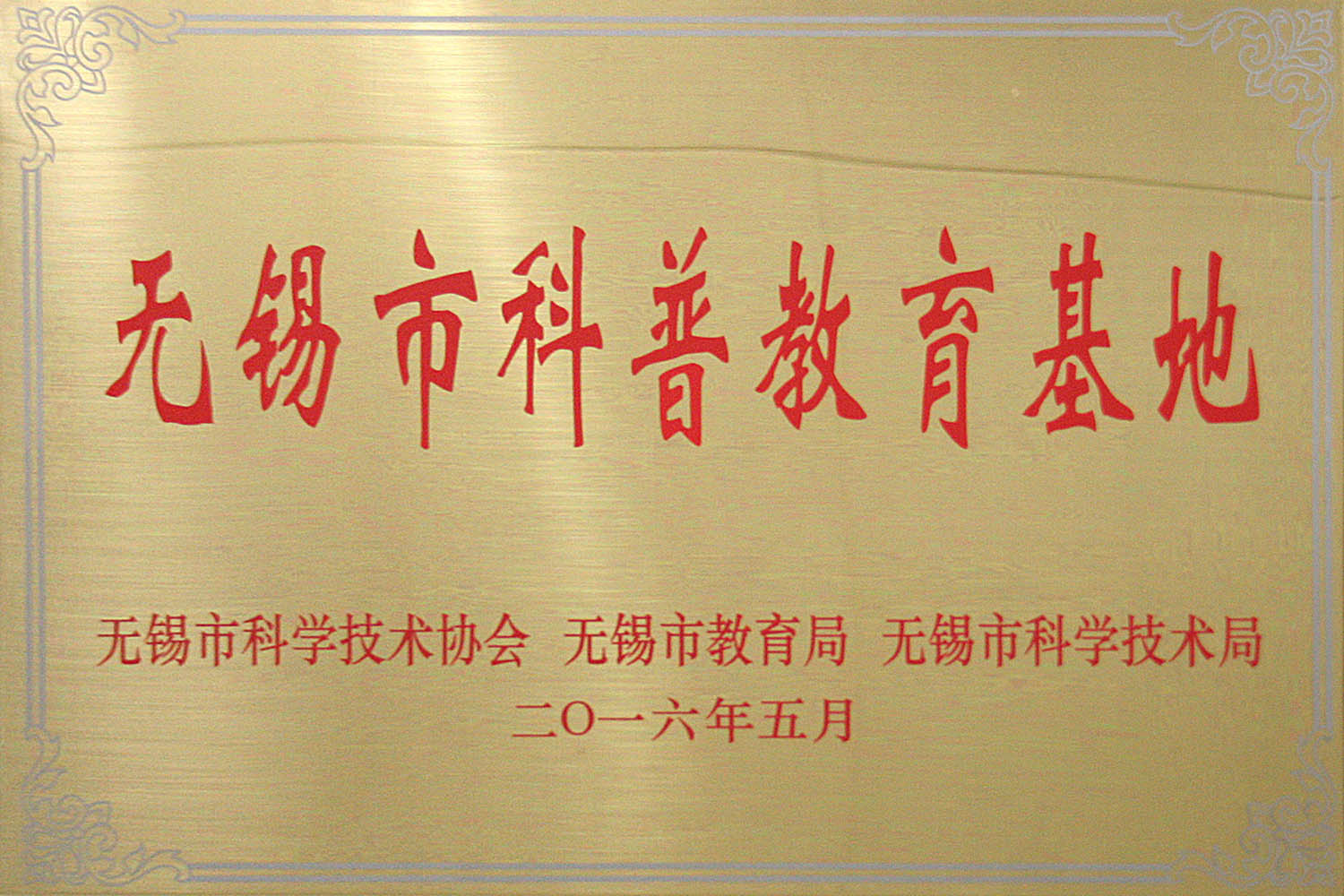 ??????? 5月20日,在2016年全國科技活動(dòng)周暨無(wú)錫市濱湖區第十六屆科普宣傳周活動(dòng)開(kāi)幕式上,博雅控股集團由無(wú)錫市科學(xué)技術(shù)協(xié)會(huì )、無(wú)錫市教育局、無(wú)錫市科學(xué)技術(shù)局聯(lián)合授予“無(wú)錫市科普教育基地”稱(chēng)號。