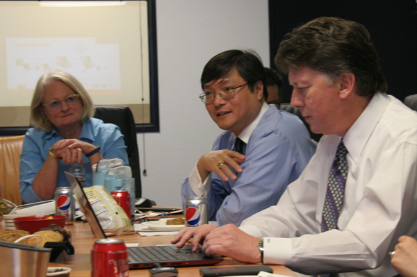 ??????? 近日,博雅控股集團董事長(cháng)許曉椿博士、總裁李詣書(shū)、副總裁王謀、袁志平一行前往美國加利福尼亞州埃默里維爾市參觀(guān)考察集團旗下控股公司Cesca(NASDAQ:KOOL),Cesca總裁Robin?C.Stracey、首席財務(wù)官Mike?Bruch、印度區域執行理事Venkatesh?Ponemone、制造業(yè)和全球供應鏈副總裁Kim?Ellner及其他Cesca管理人員及員工熱情接待了許曉椿博士一行,大家進(jìn)行了座談及參觀(guān)了Cesca辦公區、設備陳列及實(shí)驗室。