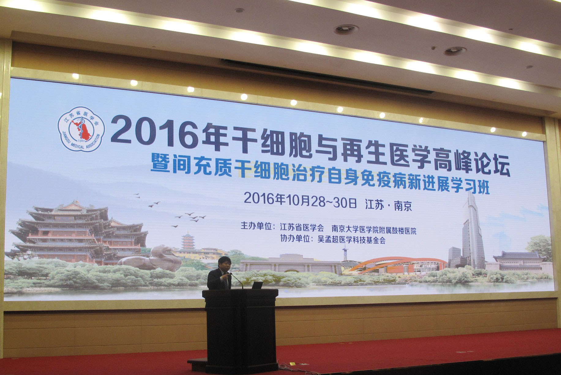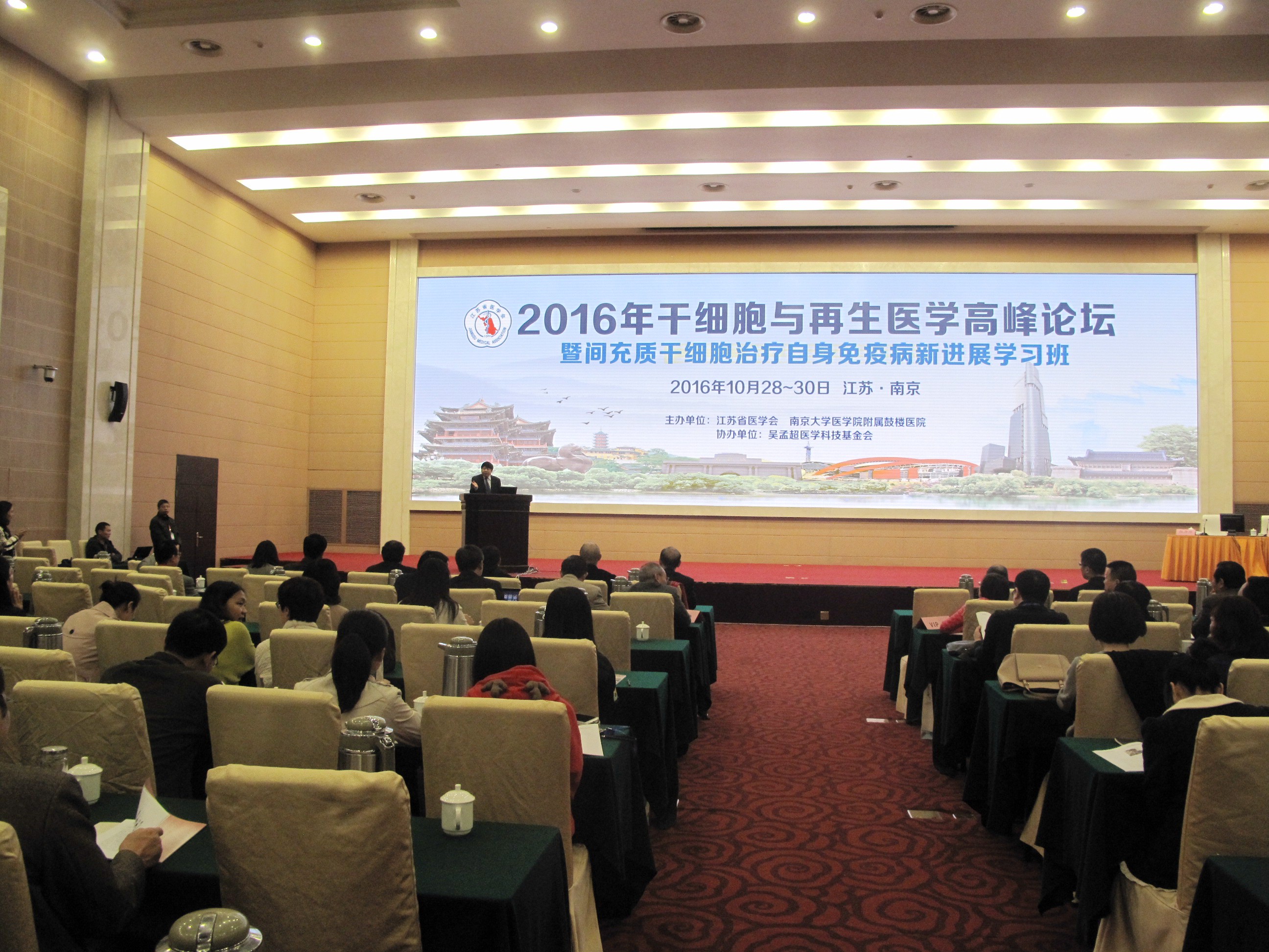 ??????? 2016年10月29-30日,全國干細胞與再生醫學(xué)高峰論壇暨間充質(zhì)干細胞治療自身免疫病新進(jìn)展國家級學(xué)習班在南京召開(kāi)。一大批國內外干細胞與再生醫學(xué)領(lǐng)域的專(zhuān)家、學(xué)者在兩天內帶來(lái)20多場(chǎng)行業(yè)頂級演講,200多名醫生和專(zhuān)業(yè)人士參會(huì )。南京大學(xué)醫學(xué)院附屬鼓樓醫院副院長(cháng)孫凌云主持大會(huì )并作開(kāi)幕致辭,中國科學(xué)院上海生命科學(xué)研究院、上海交通大學(xué)醫學(xué)院健康科學(xué)研究所所長(cháng)時(shí)玉舫、暨南大學(xué)再生醫學(xué)教育部重點(diǎn)實(shí)驗副主任蔡冬青及中山大學(xué)中山醫學(xué)院教授項鵬等專(zhuān)家分別作《間充質(zhì)干細胞的免疫生物學(xué)特性》?、《梗死心肌的細胞治療——干細胞或其他細胞》及《間充質(zhì)干細胞的臨床轉化:進(jìn)展與挑戰》演講,與在座的專(zhuān)業(yè)人士開(kāi)展了深入、熱烈的研討。