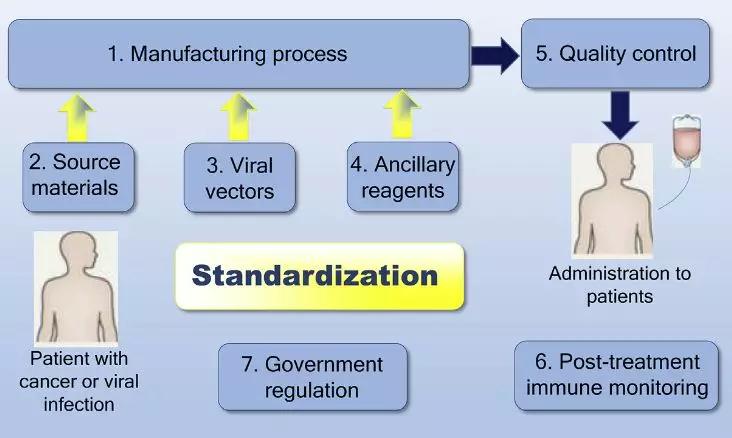 戴曉峰教授和韓為東教授指出,以下7個(gè)因素的標準化對于大規模CAR-T生產(chǎn)的成功是決定性的: