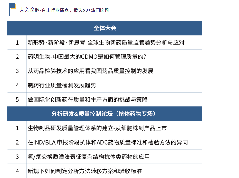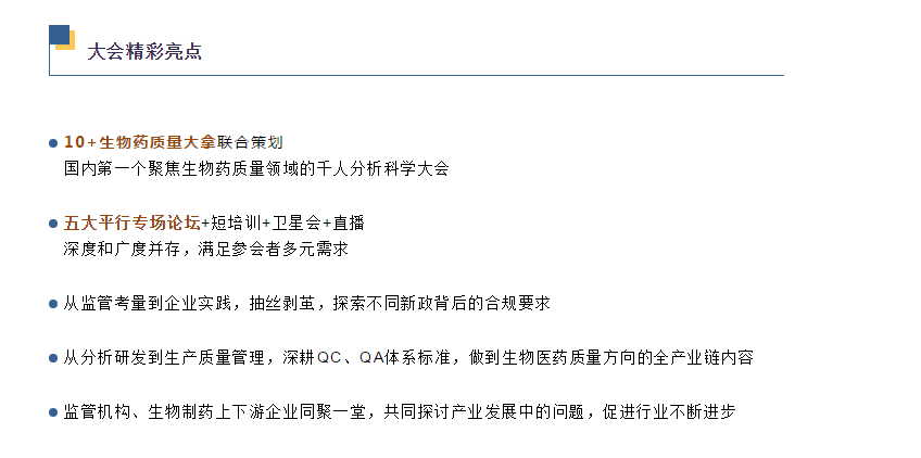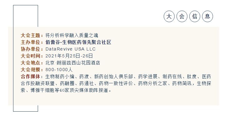 基于此,2021年QbD第二屆生物藥質(zhì)量分析科學(xué)大會(huì )將于5月25日-26日在京重磅召開(kāi)!本次大會(huì )由佰傲谷發(fā)起主辦,特設五大平行專(zhuān)場(chǎng)論壇,召集1000+行業(yè)專(zhuān)家、50+權威大咖與會(huì ),共同探索研討,助力國內企業(yè)藥品質(zhì)量提升、質(zhì)量管理體系健全,與國際規范并軌。